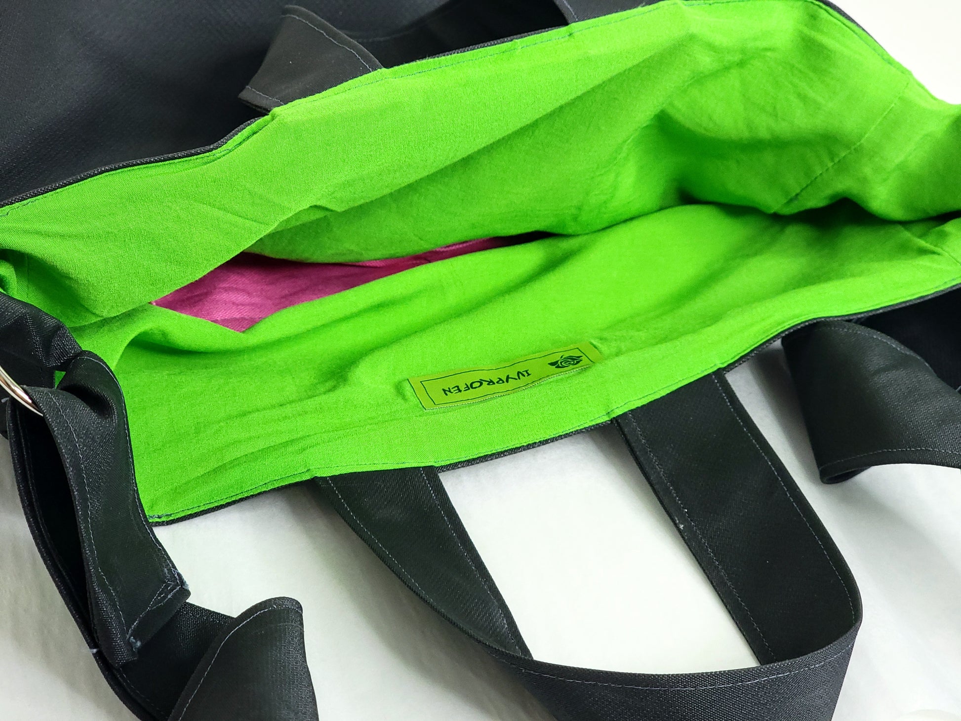 Ottertex waterproof canvas tote bag with rayon lining and cotton canvas pockets.